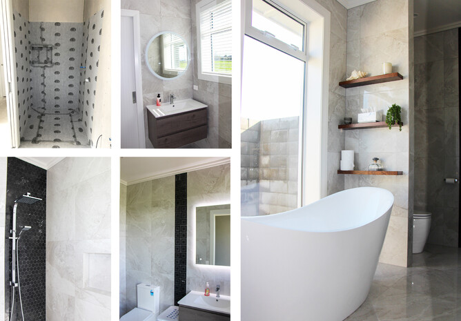 Expectations were high when we completed a recent residential job in Horsham Downs, Hamilton. Working with high-end Hamilton builder Karl Kampenhout, the new home build had an expansive floor plan, with four bathrooms to tile. Utilising Ardex waterproofing products, a quick turnaround was achieved, with tiles installed 2 hours after waterproofing.