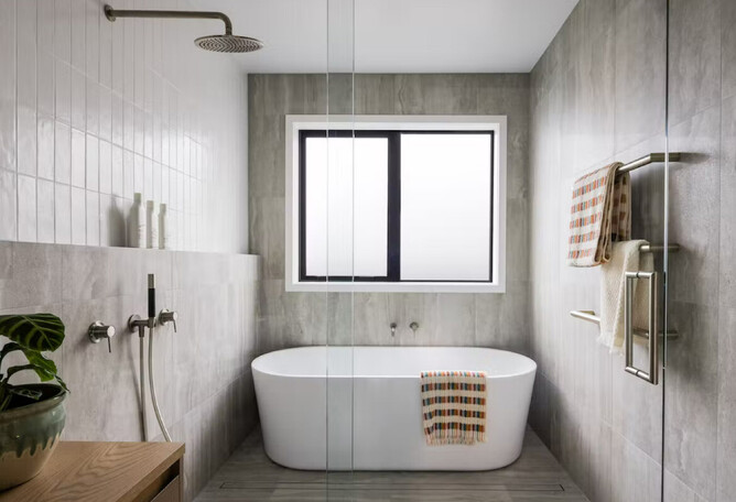 Tiled throughout by Impact Tiling, the home features a stunning feature bath and tiled walk-in shower combination.